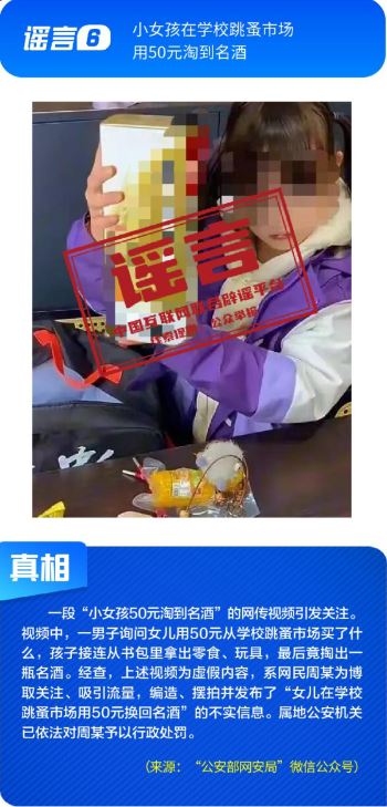 ??社會民生領域謠言引發(fā)不當炒作。“小女孩在學校跳蚤市場用50元淘到名酒”的視頻,實為擺拍炒作,虛構“撿漏”情節(jié)博取流量;“某奶茶品牌疑似擦邊毒品”蹭炒網上熱點,似是而非、夸大其辭的說法對企業(yè)合法經營造成困擾,也引發(fā)公眾不必要的焦慮;“微信好友數(shù)量過多會被封號”系對平臺運營機制的無端猜測,利用網民對平臺規(guī)則的陌生進行炒作,還可能給黑灰產帶來可乘之機。