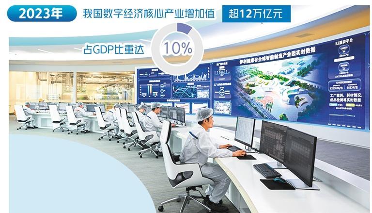 2023年,我國數(shù)字經(jīng)濟核心產(chǎn)業(yè)增加值超過12萬億元,占GDP比重達10%。今年前5個月,軟件業(yè)務(wù)收入超4.93萬億元,同比增長11.6%;信息技術(shù)服務(wù)收入3.33萬億元,同比增長12.9%?!拔覀冎С峙嘤艘慌|(zhì)量評價、資產(chǎn)評估、交易撮合等數(shù)據(jù)服務(wù)商,數(shù)字經(jīng)濟產(chǎn)業(yè)生態(tài)不斷豐富?!痹谌涨芭e辦的2024全球數(shù)字經(jīng)濟大會上,工業(yè)和信息化部副部長辛國斌說。