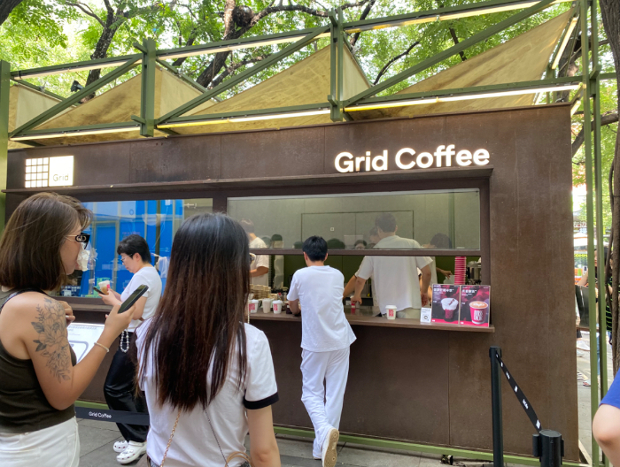 Grid Coffee與迪奧聯(lián)名咖啡吸引消費者排隊購買。