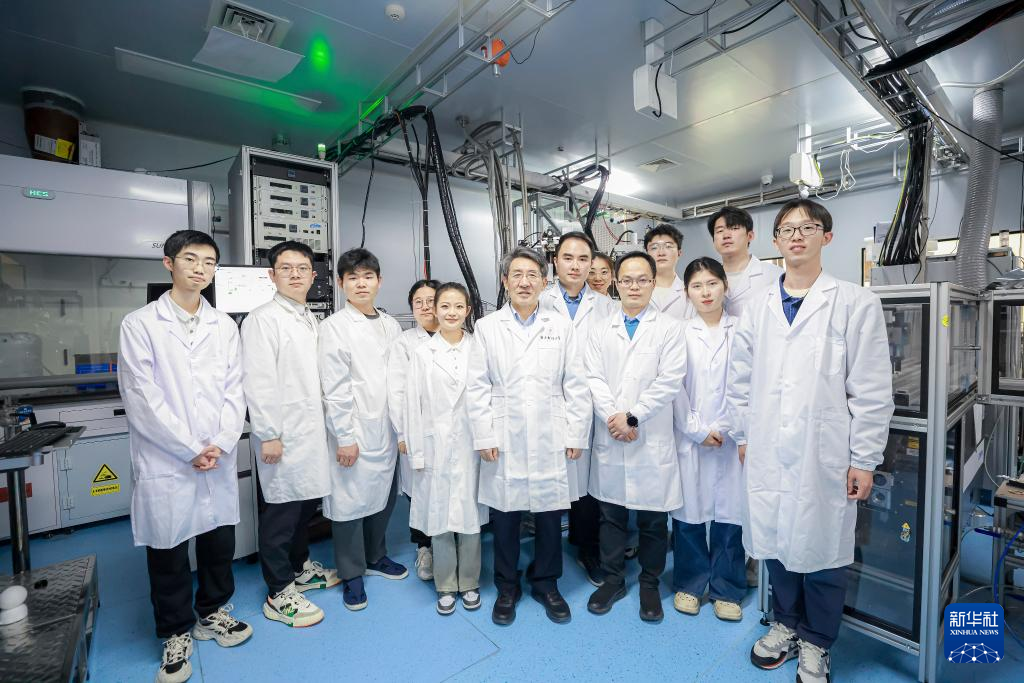 圖為薛其坤與研發(fā)團隊在實驗室(資料照片)。新華社發(fā)(受訪者供圖)