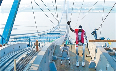 “由于貓道為鏤空的柔性非鋪裝路面,加之高空強風(fēng)帶來的晃動,對機器人的運動控制、視覺感知、自平衡能力和避障都提出了更高要求?!睓C器人研制方、飛闊科技聯(lián)合創(chuàng)始人劉炳政介紹。完成此次挑戰(zhàn),在一定程度上加速著中國智造與中國建造的“雙向奔赴”。