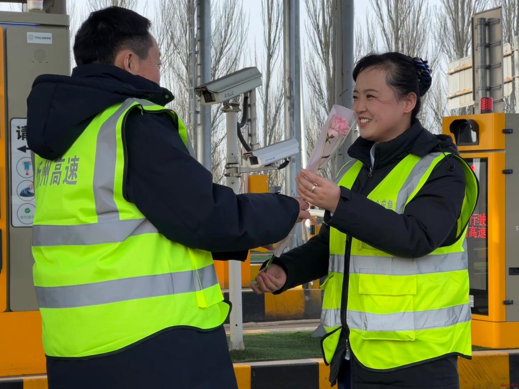 晨光初綻,山西交控忻州公司新廣武收費站的車道還浸潤著料峭春寒,新廣武收費站黨支部書記、站長躬身向車道巡檢的女職工送上一束裹滿晨露的康乃馨鮮花,女職工接過花束時,指尖觸碰的不僅是鮮嫩花瓣,更是一份并肩前行的溫度。春風吹散她鬢角的碎發(fā),卻吹不散嘴角漾開的笑意——那是被看見、被珍視的感動,如同花瓣上顫動的露珠,折射出平凡崗位里的璀璨微光。
