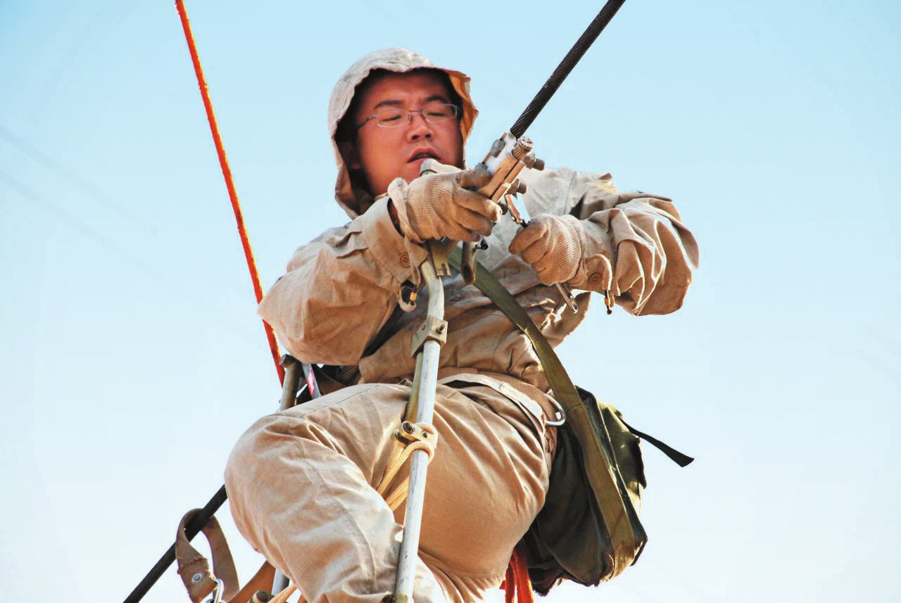 2000年,張杰退伍后來到國網(wǎng)忻州供電公司,當了一名輸電線路帶電檢修工。帶電作業(yè)難度大、風險高,對身體、技術和心理等方面要求很高。檢修工每次都要穿上厚厚的屏蔽服,背上幾公斤重的工具包,爬上軟梯到達7層樓高的地方進行作業(yè)。剛參加工作時,張杰自知經(jīng)驗不足,只要有去檢修現(xiàn)場的機會,他就爭著去、搶著干,憑著肯鉆研、不服輸?shù)木瘢瑥埥苋〉昧撕艽蟮倪M步。