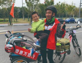 幾個(gè)月前,湖南株洲45歲的羅新華做出一個(gè)很多人難以理解的決定,他要騎自行車(chē)帶著三歲半的兒子高高進(jìn)行一次長(zhǎng)達(dá)數(shù)千公里的長(zhǎng)途騎行。10月2日出發(fā),目前他已騎行1200多公里,途經(jīng)湖南、湖北、江西、安徽,到達(dá)江蘇境內(nèi)。沿途,高高見(jiàn)到了大自然中很多新鮮事物,而羅新華也借這次機(jī)會(huì)第一次與兒子長(zhǎng)時(shí)間朝夕相處。