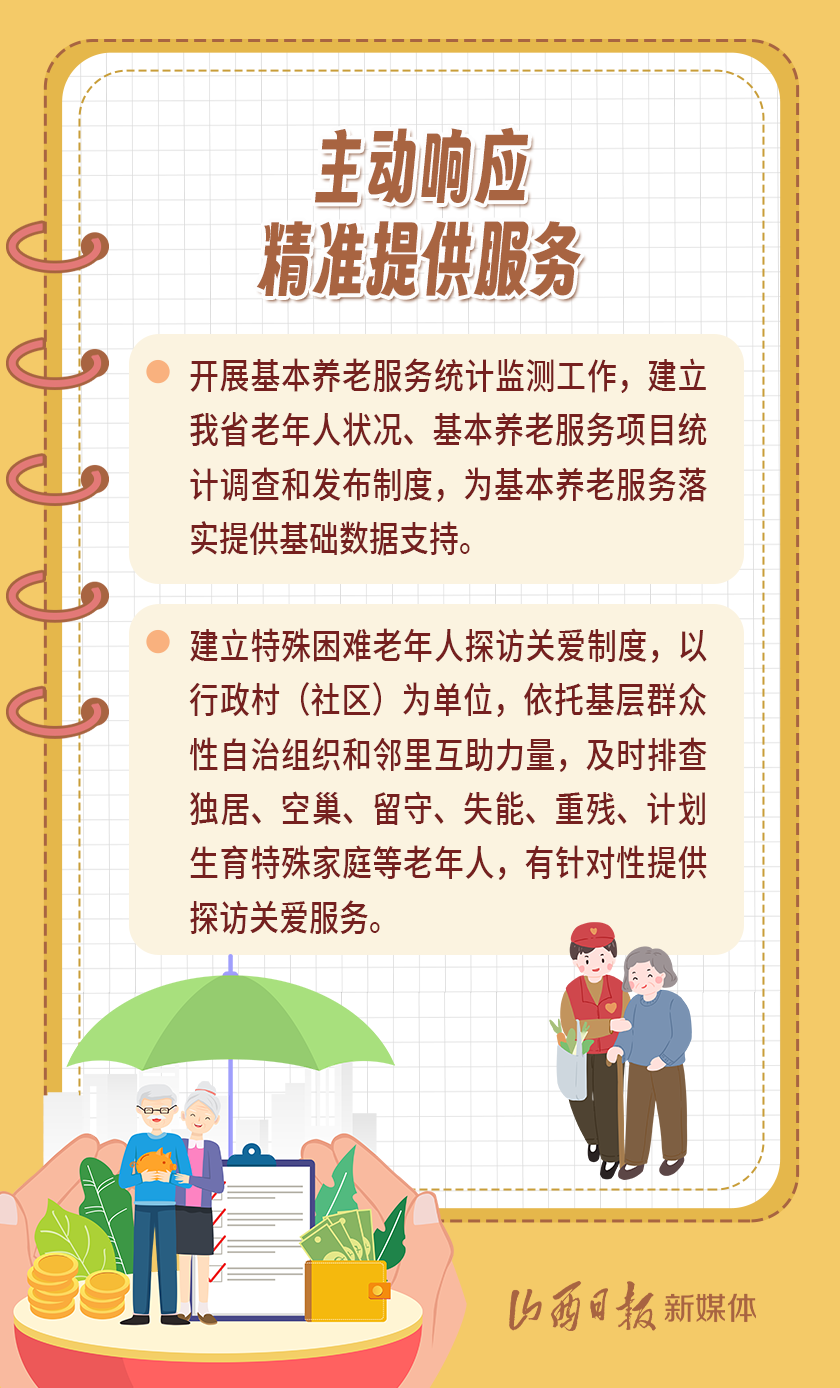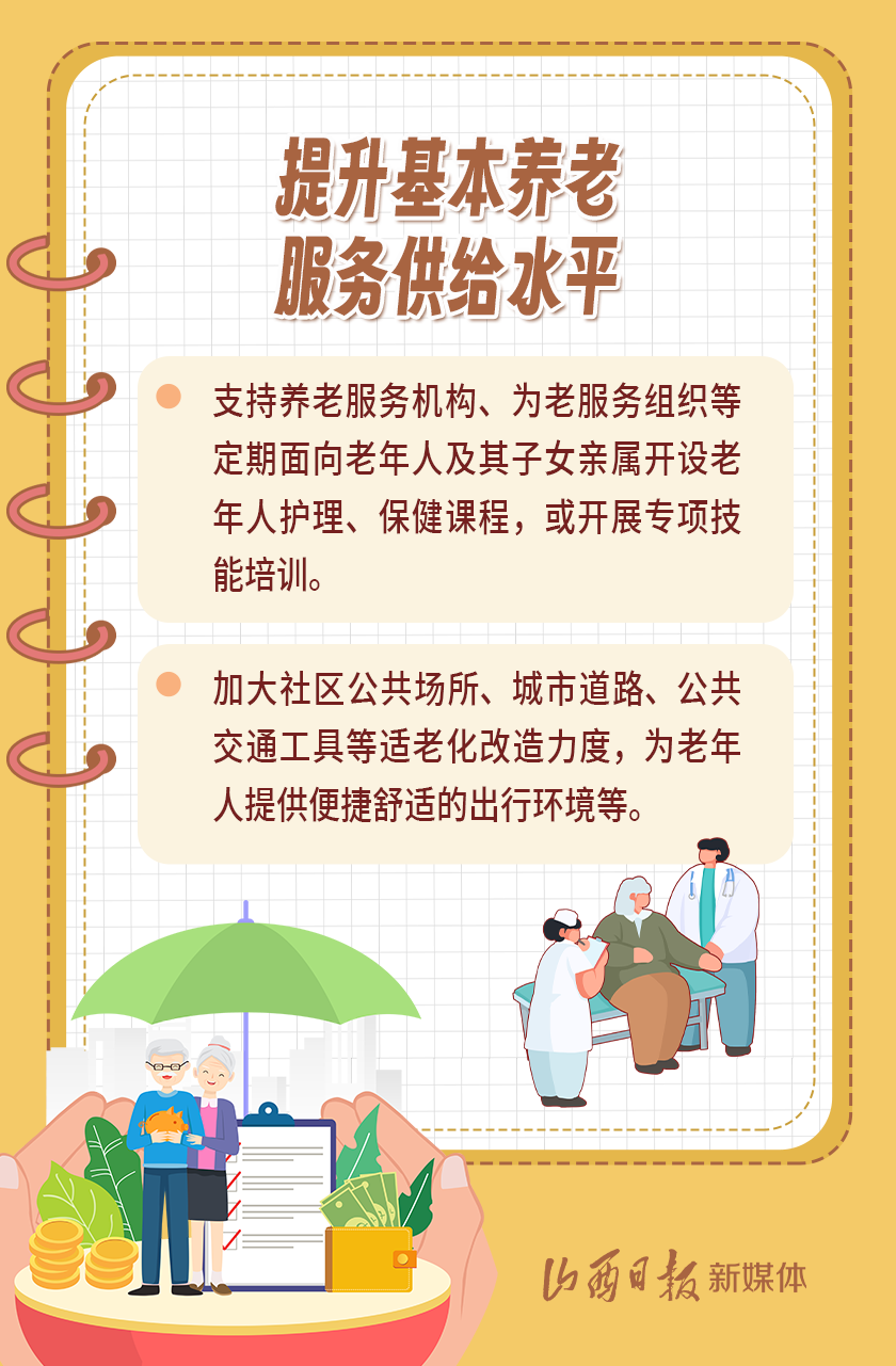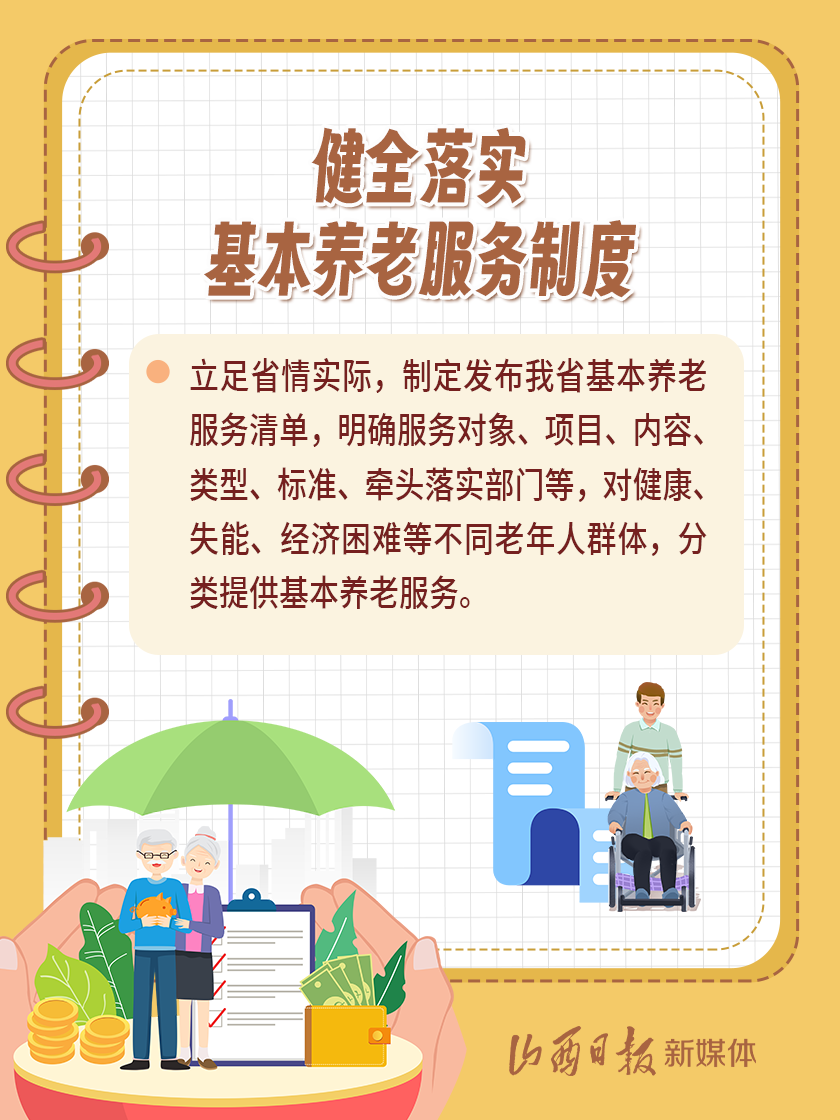 近日,我省出臺《山西省基本養(yǎng)老服務(wù)體系建設(shè)實施方案》,以積極應(yīng)對全省人口老齡化,扎實推進(jìn)基本養(yǎng)老服務(wù)體系建設(shè),切實提高基本養(yǎng)老服務(wù)的公平性、可及性,不斷增強老年人的獲得感、幸福感、安全感。