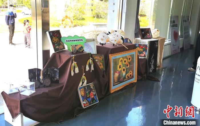 “真誠”是記者對這里的第三印象。在店內(nèi),其設(shè)有舟山市特殊教育學(xué)校學(xué)生作品展區(qū),點鉆畫、手工扇等作品,工藝精美;店里的愛心墻上,貼著五彩繽紛的貼紙?!霸改阊劾镉袗郏闹杏泄狻薄霸感切堑暮⒆硬辉賾峙吕щy,勇敢向前”……這些貼紙上的話,都是顧客“打卡”時留下的“最美祝福”。