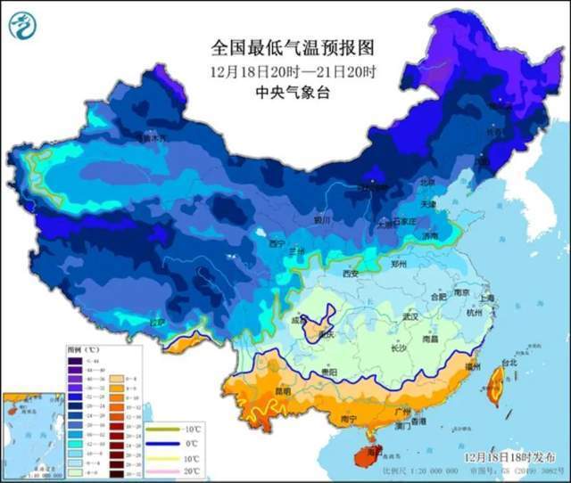 預(yù)計12月18日08時至21日08時,新疆北部、西北地區(qū)中東部、內(nèi)蒙古、華北地區(qū)、東北地區(qū)、黃淮、江淮、江漢、江南北部、貴州等地部分地區(qū)日最低氣溫較歷史同期偏低5℃以上,最低氣溫0℃線將位于貴州南部至江南北部一帶。中央氣象臺12月18日6時繼續(xù)發(fā)布低溫黃色預(yù)警。