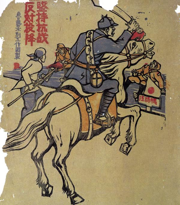 魯藝木刻工作團(tuán)制作的新年畫《堅(jiān)持抗戰(zhàn) 反對(duì)投降》。新華社發(fā)(延安魯藝文化中心供圖)