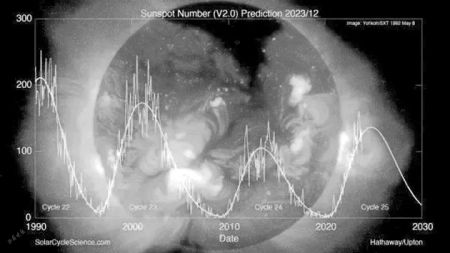 自1755年觀測到第一個太陽活動周期開始,人類現(xiàn)在正經(jīng)歷第25個太陽活動周期的上升階段??梢灶A(yù)計,太陽活動將逐漸增加,太陽耀斑和日冕物質(zhì)拋射發(fā)生的次數(shù)將越來越多。