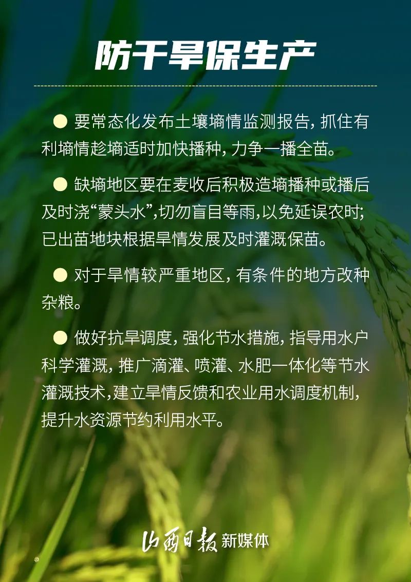 6月—8月是糧食作物生長發(fā)育和產量形成的關鍵期。預計今年汛期全省可能出現區(qū)域性極端強降水過程并引發(fā)洪澇和次生地質災害,未來三個月全省平均氣溫較常年同期偏高。因此,省農業(yè)農村廳會同省水利廳、省應急管理廳、省氣象局制定《科學應對旱澇等自然災害奮力奪取秋糧和全年糧食豐收預案》,全力抓好防汛抗旱應對工作,努力奪取全年糧食和農業(yè)豐收。