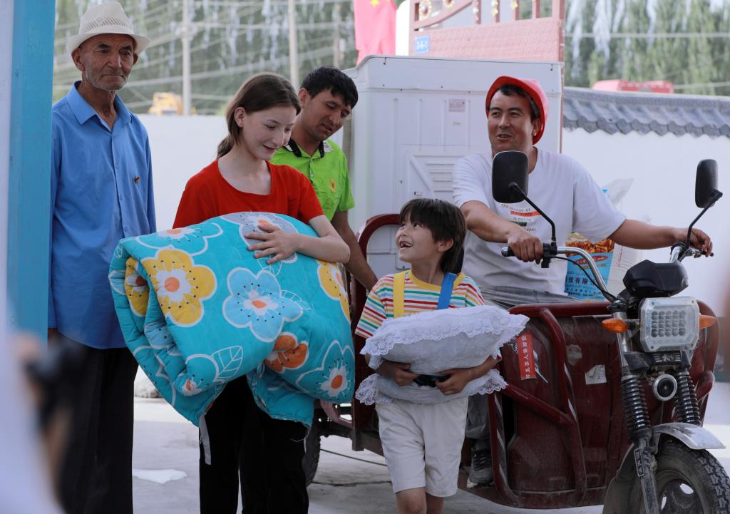 6月30日,烏什縣亞曼蘇柯?tīng)柨俗巫遴l(xiāng)居民正搬進(jìn)新房。新華社發(fā)(楊碩 攝)