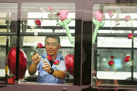 七夕節(jié)即將到來,8月8日,在太原公交第三汽車分公司,公交車廂里上演了一場(chǎng)別樣的浪漫——堅(jiān)守在一線的兩名公交司機(jī)閻樹德和焦更新,分別為出車回來的妻子準(zhǔn)備了大大的驚喜。用送花、提前準(zhǔn)備飯菜、布置車廂等行動(dòng)表達(dá)自己的愛意。