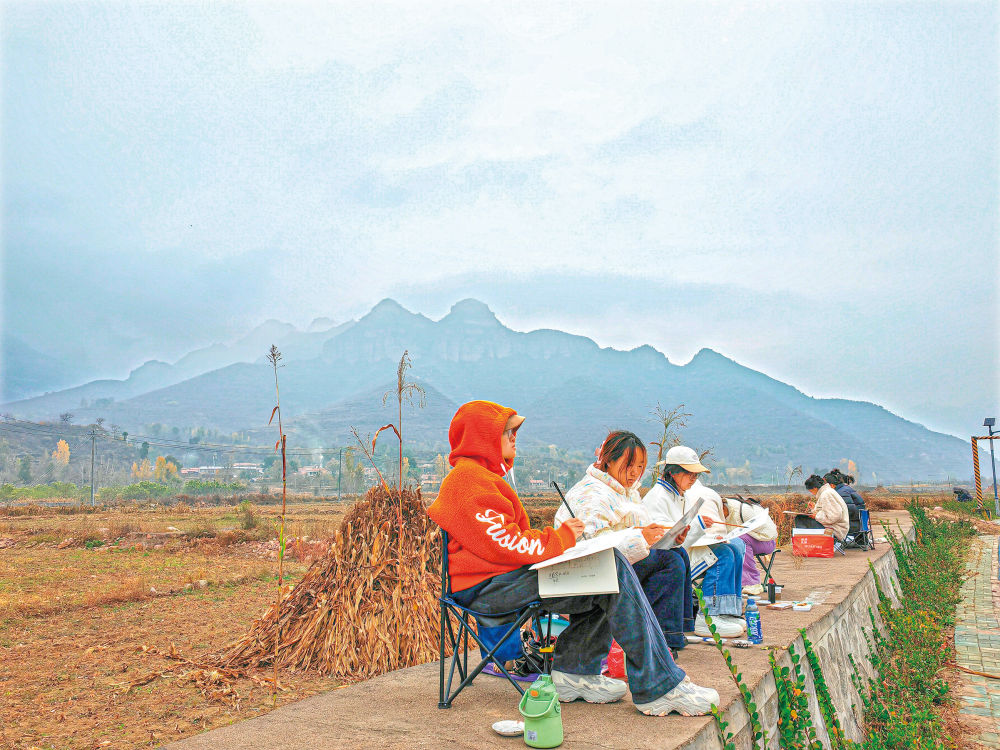 雖然已時近立冬,但來自晉中學(xué)院的一百多名師生仍堅持每天外出寫生?!斑@里是太行山中段最雄美的地方,來到這里可以讓學(xué)生們接受大自然的洗禮,同時感受地方文化,讓他們積累創(chuàng)作素材的同時了解農(nóng)村、熱愛農(nóng)村?!睍x中學(xué)院國畫老師孟冠華說。