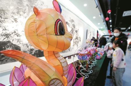 1月11日,“春風文潤 迎春展演暨惠民活動”在位于南京的江蘇省文化館新街口文化客廳舉行,讓市民通過看演出、觀展覽、享非遺等多種形式,在家門口享受高品質的文藝活動。圖為市民們在活動中參觀非遺項目秦淮燈彩。