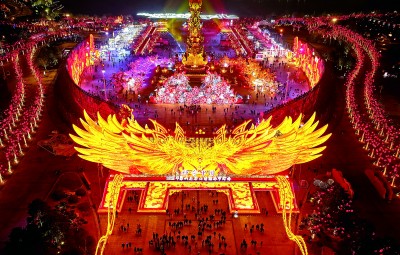 “今年的豫園燈會延續(xù)了對《山海經(jīng)》的挖掘,也打造了展現(xiàn)蛇年春節(jié)主題的‘天地人和,金蛇獻(xiàn)瑞’燈組,進(jìn)一步展現(xiàn)中華優(yōu)秀傳統(tǒng)文化魅力。”豫園股份首席文化官陳佳說。