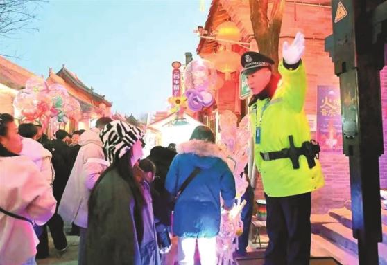 為防止古城局部聚集,忻州市公安局忻府分局實(shí)行“定點(diǎn)值守+流動(dòng)巡邏”相結(jié)合的勤務(wù)模式,將古城分為6個(gè)巡區(qū),安排了150名警力,疏導(dǎo)人流、解答各類(lèi)咨詢(xún),同時(shí)在拍照打卡等重點(diǎn)地段循環(huán)廣播提示安全注意事項(xiàng)。
