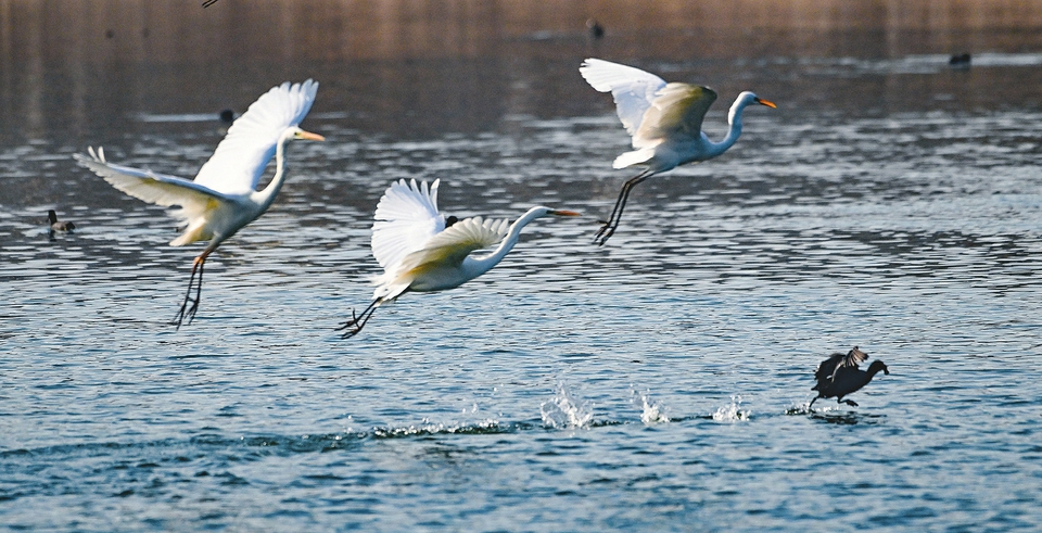 太原市汾河濕地公園 野生鳥類奏響春天樂章