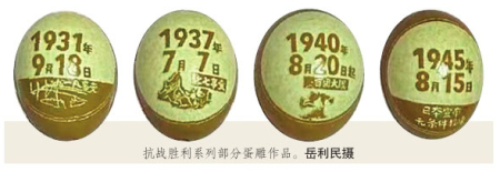 該系列作品遴選了“九一八事變”“七七盧溝橋事變”“百團大戰(zhàn)”等12例抗戰(zhàn)歷史事件作為蛋雕素材,經過20余天的構思與精雕細刻,岳利民讓他的“家國情懷”成為了國家記憶的一部分。
