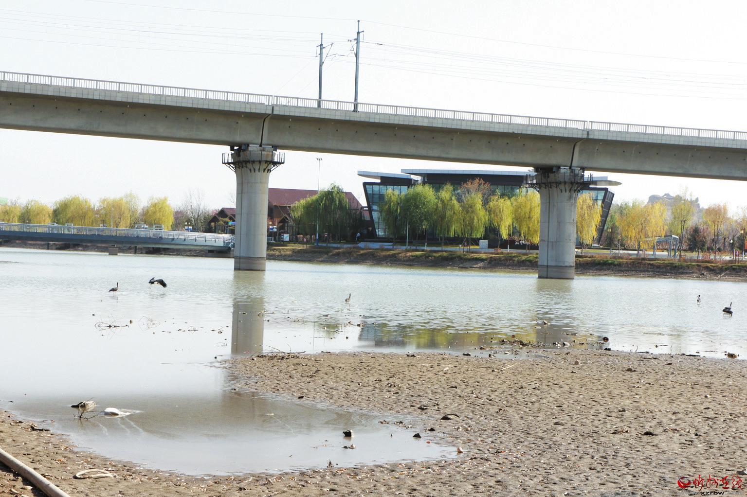 11月7日,數只黑鸛在云中河景區(qū)高速鐵路橋下涉水覓食。我市在加大城市基礎設施建設的同時,公園和綠地的建設同步提速,極大地改善了人居環(huán)境。優(yōu)美的環(huán)境不僅提高了居民的生活質量,也吸引了野生鳥類棲息。 (張劍雄 攝)