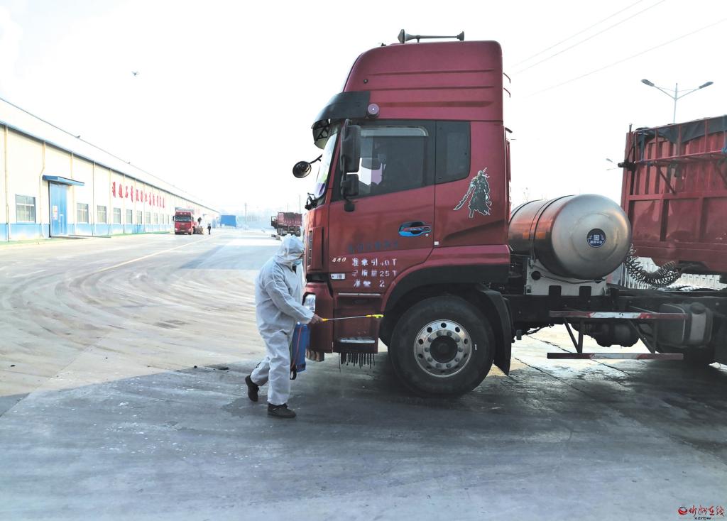 位于忻府區(qū)豆羅鎮(zhèn)建材工業(yè)園區(qū)的泰山石膏(忻州)有限公司在疫情防控工作中,嚴(yán)格人員進(jìn)廠測(cè)體溫、掃行程碼、登記和車(chē)輛消殺制度,嚴(yán)防疫情輸入。圖為1月20日,該公司安保人員正在對(duì)進(jìn)廠送原料的司機(jī)掃碼登記,并對(duì)車(chē)輛進(jìn)行消殺。 (本報(bào)記者 張劍雄 攝)