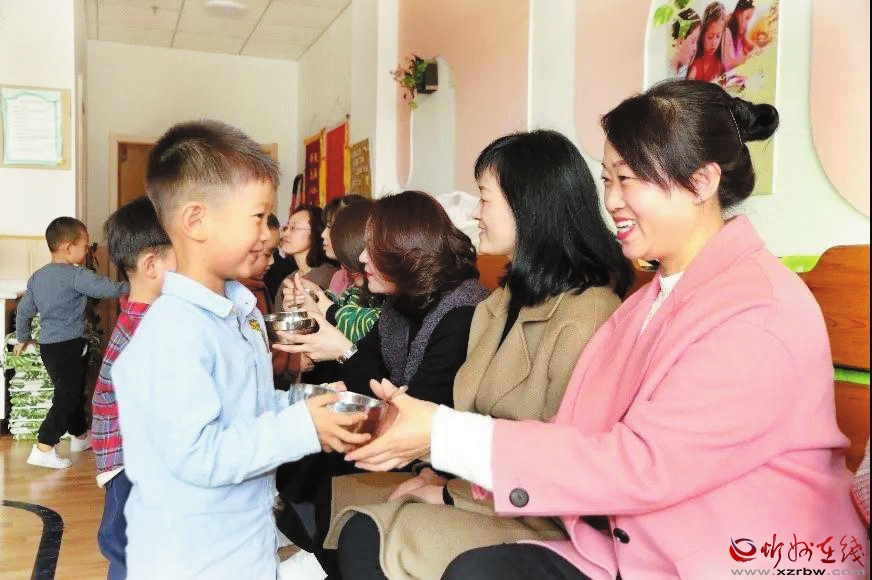 3月8日,忻州市幼兒園雁門分園舉辦了以感恩為主題的親子活動,通過形式多樣的活動讓孩子們陪媽媽一起過節(jié),引導(dǎo)幼兒從小學(xué)會感恩,讓媽媽們感受到孩子的成長與愛。圖為活動當(dāng)天,幼兒將自己做的梨湯送給媽媽。 (本報通訊員 攝)