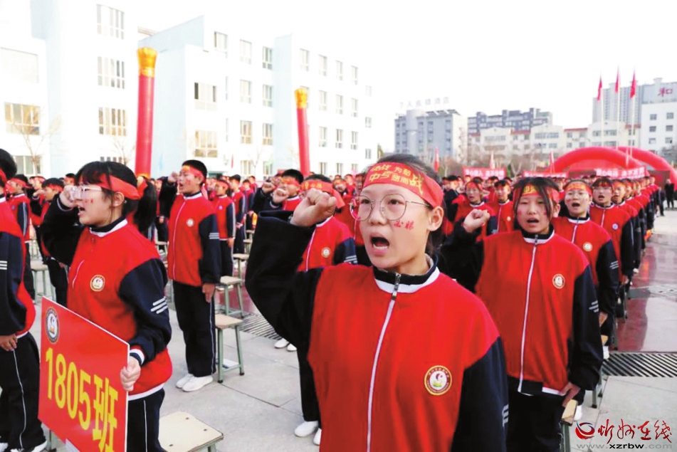 本報(bào)訊 為了激發(fā)學(xué)生競(jìng)爭(zhēng)意識(shí)和拼搏精神,促使初三學(xué)生以良好的精神狀態(tài)投入到中考備考復(fù)習(xí)中,3月11日下午,忻州市第五中學(xué)舉行2021屆初三中考百日誓師大會(huì),學(xué)校領(lǐng)導(dǎo)及家長(zhǎng)代表為初三師生加油鼓勁,初三年級(jí)全體師生參加。
