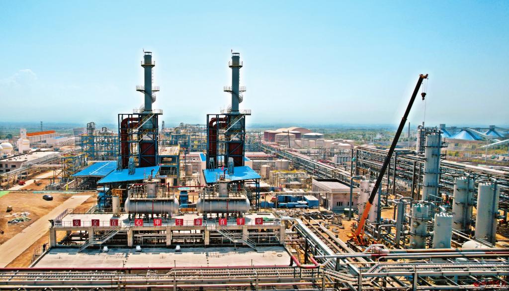 同德科創(chuàng)PBAT新材料產(chǎn)業(yè)鏈一體化項(xiàng)目建設(shè)現(xiàn)場(chǎng)。 本報(bào)記者 張存良攝