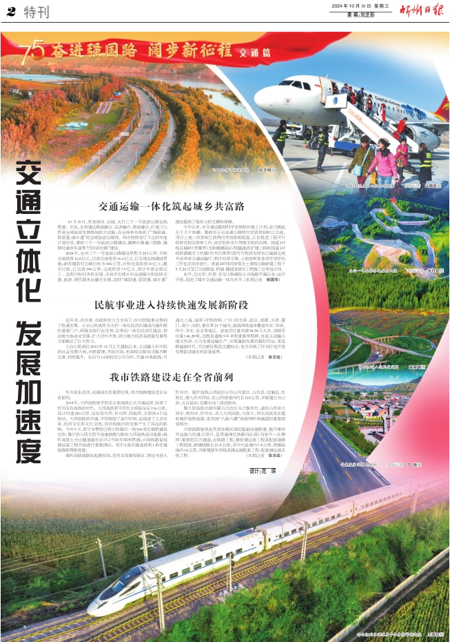 2024年,全市三個(gè)一號(hào)旅游公路建設(shè)里程為253公里,目標(biāo)完成投資16.8億元,目前完成投資16.4億元,已實(shí)現(xiàn)全線建成貫通;新改建農(nóng)村公路目標(biāo)為445公里,目標(biāo)完成投資10億元,截至目前,已完成390公里,完成投資7.9億元,預(yù)計(jì)年底全部完工。這些目標(biāo)任務(wù)的實(shí)現(xiàn),為我市實(shí)現(xiàn)鄉(xiāng)村全面振興和加快交通、旅游、現(xiàn)代服務(wù)業(yè)融合發(fā)展,加快“城景通、景景通、城鄉(xiāng)通”建設(shè)提供了強(qiáng)有力的支撐和保障。