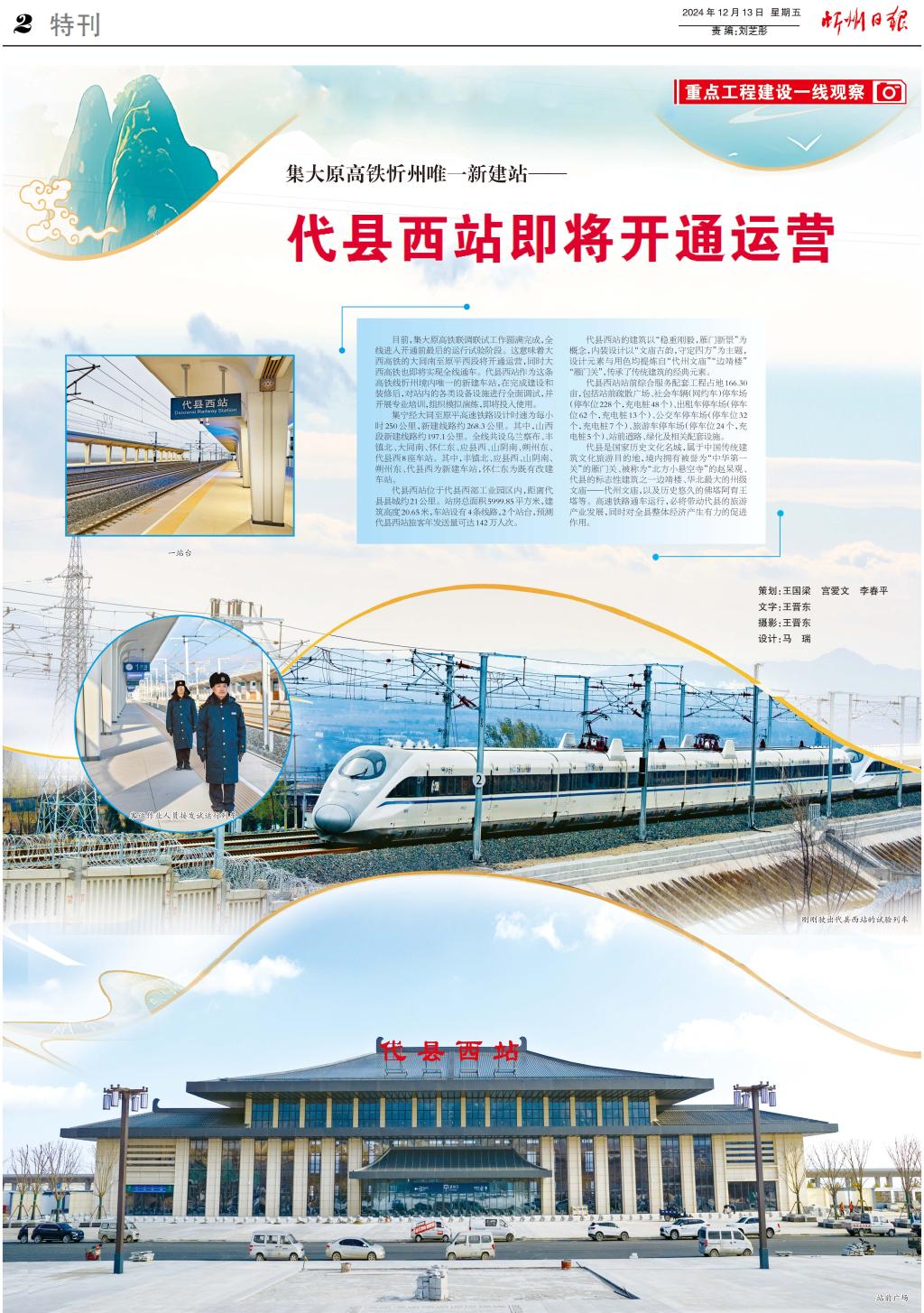 目前,集大原高鐵聯(lián)調聯(lián)試工作圓滿完成,全線進入開通前最后的運行試驗階段。這意味著大西高鐵的大同南至原平西段將開通運營,同時大西高鐵也即將實現(xiàn)全線通車。代縣西站作為這條高鐵線忻州境內唯一的新建車站,在完成建設和裝修后,對站內的各類設備設施進行全面調試,并開展專業(yè)培訓,組織模擬演練,即將投入使用。