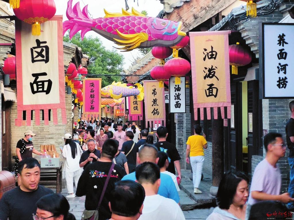 記者觀察到,即使是在工作日,古城內(nèi)的大街小巷也游客不斷,一些熱門餐館門前還排起了長隊。農(nóng)家樂“七盔八碗”的負(fù)責(zé)人王國棟告訴記者,每逢節(jié)假日,他的店內(nèi)桌子都不夠用,場面十分火爆。