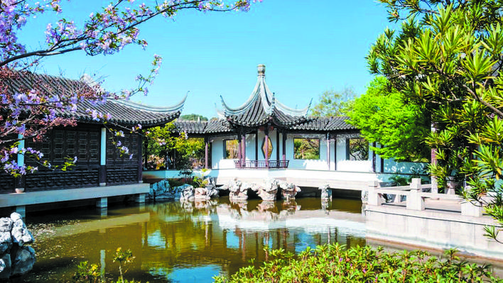 我最愛的是那亭子下圍坐在一起的蘇州人,他們打著小牌,喝著春茶,欣賞著園林雨趣,自得其樂。這片園子是屬于他們的,每天浸在園子里,享受著春茶的芬醇,體味著園林的雅致,性格中似乎也加入了幾許清雅。如果有人即興哼唱幾句評彈,或是昆曲,就更和這園子有了相同的味道。