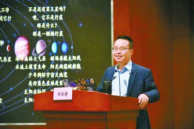 鄭永春曾多次到新疆克拉瑪依、湖北黃石、安徽六安、廣西馬山、陜西銅川、青海德令哈的大山深處,給那里的孩子們講太空里的故事,也許是因為講火星講得多,孩子們都喜歡叫他“火星叔叔”?!澳抢镉行┖⒆訌膩頉]上過科學(xué)課,他們也沒有聽說過,太空里的種種故事?!编嵱来赫f著,聲音變得低沉起來,他忘不了,那些孩子聽到太空時,眼里閃爍的光芒,“大山深處,同樣需要科學(xué)之光照耀?!编嵱来赫f,他愿意永遠(yuǎn)做這些孩子的“火星叔叔”。