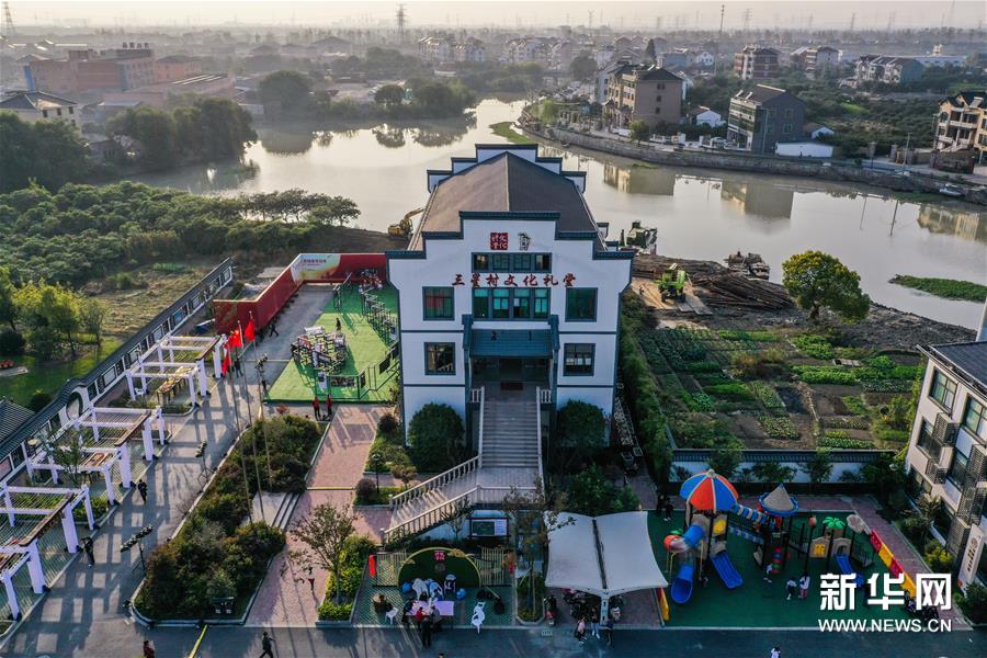 11月7日,在杭州市余杭區(qū)塘棲鎮(zhèn)三星村文化禮堂前,村民在展示傳統(tǒng)技藝“翻絲綿”(無(wú)人機(jī)照片)。當(dāng)日,浙江省杭州市余杭區(qū)農(nóng)村文化禮堂“百村千場(chǎng)”聯(lián)盟走親在塘棲鎮(zhèn)三星村文化禮堂正式啟動(dòng)?;顒?dòng)現(xiàn)場(chǎng)組織了米塑、滾燈、鰲魚(yú)燈、高蹺、掮爐子等余杭非遺技藝走親展示以及塘棲鎮(zhèn)禮堂聯(lián)盟原創(chuàng)節(jié)目展演。 從2020年3月開(kāi)始,浙江省杭州市余杭區(qū)塘棲鎮(zhèn)以“小康路上我們一起曬幸?!睘橹黝},啟動(dòng)美麗鄉(xiāng)村禮堂文化節(jié)活動(dòng),開(kāi)展“幸福接力賽”、文化“云”講課等一系列基層文化活動(dòng)。塘棲鎮(zhèn)還創(chuàng)新推進(jìn)了“禮堂聯(lián)盟”結(jié)對(duì)互促工作,與區(qū)級(jí)文化團(tuán)隊(duì)結(jié)對(duì)共建,使鄉(xiāng)村文化禮堂“活”起來(lái),全面提升鄉(xiāng)村百姓的幸福感。新華社記者 徐昱 攝