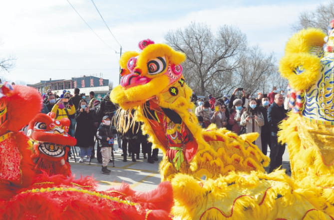 2月19日,一場群眾文化主題活動在內(nèi)蒙古自治區(qū)呼和浩特市回民區(qū)莫尼山非遺小鎮(zhèn)舉行,吸引許多游客體驗觀賞,感受傳統(tǒng)文化的魅力。圖為在呼和浩特市回民區(qū)莫尼山非遺小鎮(zhèn),民間藝人表演舞獅。 (新華社發(fā) 王 正 攝)
