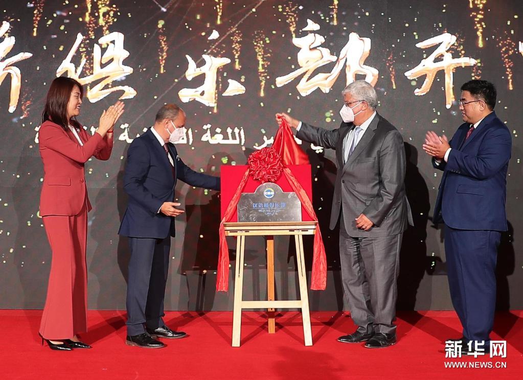中國(guó)駐埃及大使廖力強(qiáng)、埃及高等教育部副部長(zhǎng)穆罕默德·艾曼·阿舒爾和開羅大學(xué)校長(zhǎng)穆罕默德·奧斯曼·霍希特等通過線上和線下方式參加了揭牌儀式。