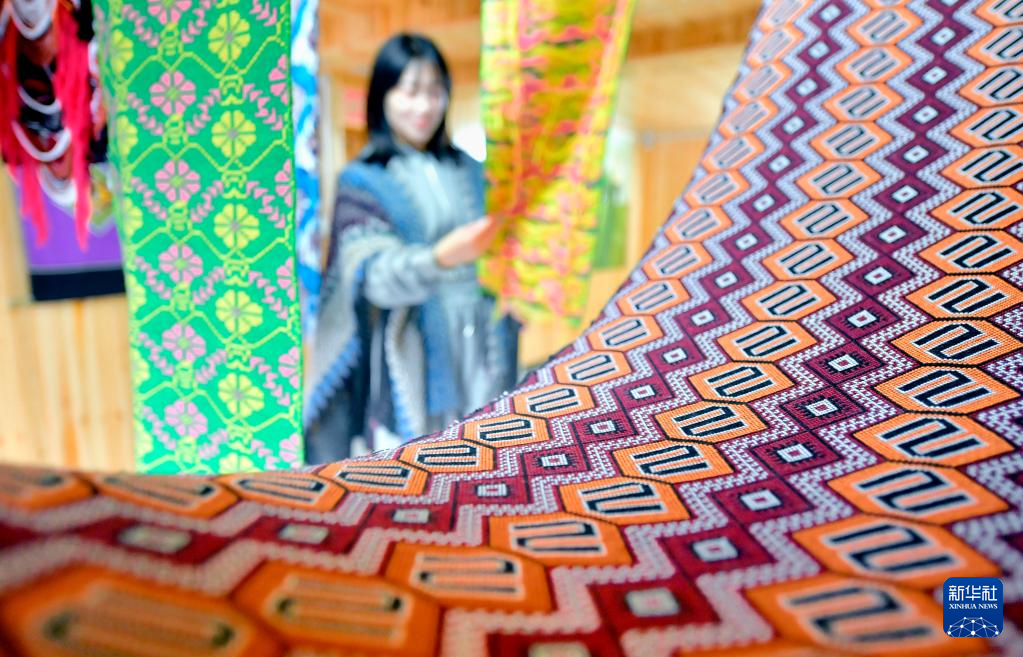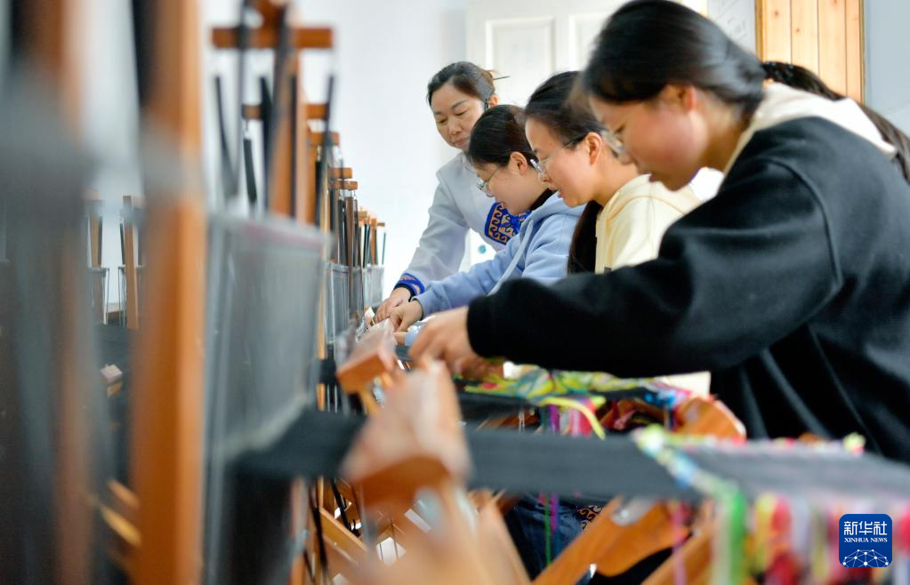 春暖花開時節(jié),湖北省宣恩縣西蘭卡普傳承基地迎來各地的學生前來研學。學生們在這里了解土家織綿文化、學習傳統(tǒng)手工技藝,感受非遺文化的魅力。西蘭卡普是一種土家織錦,色彩鮮明,紋樣美觀,其編織技藝被列入國家級非物質文化遺產(chǎn)名錄。新華社發(fā)(宋文攝)