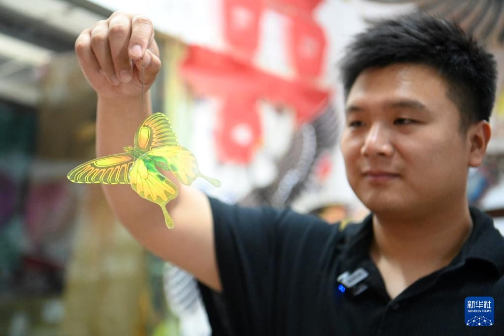 出身風(fēng)箏世家的魏博文大學(xué)畢業(yè)后,回到家鄉(xiāng)跟隨父親魏國秋“入行”做風(fēng)箏。他從自己有所基礎(chǔ)的繪畫著手,發(fā)揮年輕人的創(chuàng)新優(yōu)勢(shì),在風(fēng)箏設(shè)計(jì)上屢屢出新,不僅與一些游戲公司合作推出風(fēng)箏聯(lián)名款,還推動(dòng)風(fēng)箏制作技藝的改進(jìn)創(chuàng)新,設(shè)計(jì)了適合在室內(nèi)放飛的迷你風(fēng)箏。