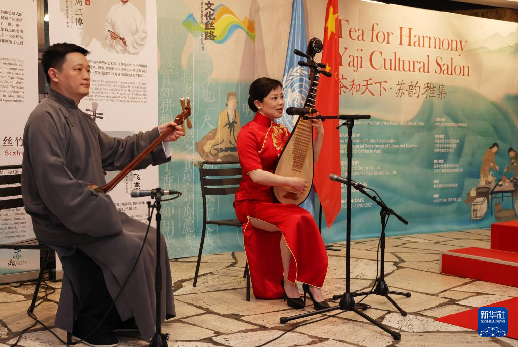 新華社巴黎7月11日電(記者張百慧)“茶和天下·蘇韻雅集”活動(dòng)11日在位于法國(guó)巴黎的聯(lián)合國(guó)教科文組織總部舉行,通過(guò)主題展、實(shí)物展和文藝表演等形式,全面介紹了茶的歷史、茶與生活、茶與文化、茶與觀光等內(nèi)容。