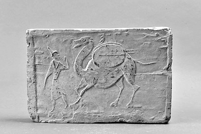 唐模制商旅磚上牽駝的胡商。 敦煌市博物館供圖