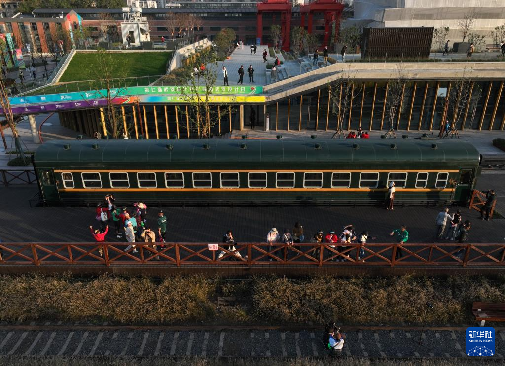 11月6日,游人在武漢市武昌四美塘鐵路遺址文化公園游覽(無人機照片)。