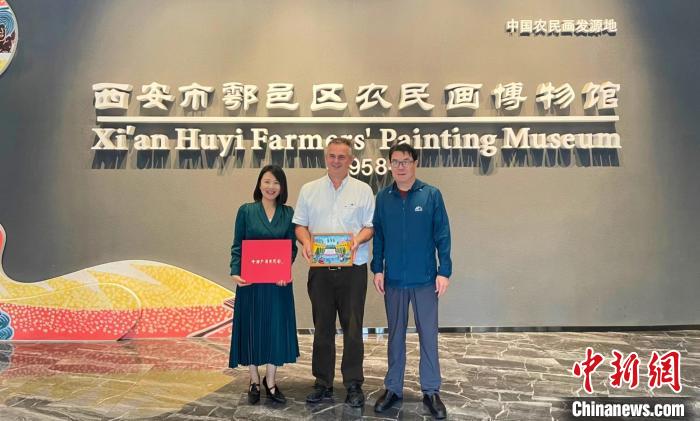 2023年8月,德國(guó)游客參觀西安市鄠邑區(qū)農(nóng)民畫博物館。(受訪者供圖)