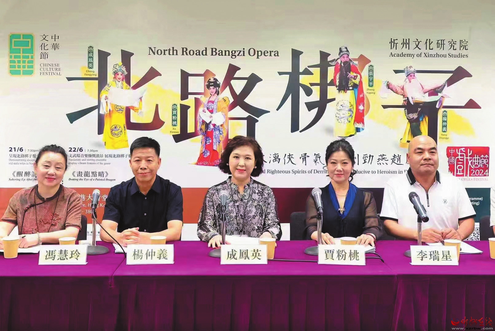 6月20日,忻州文化研究院組織精干力量,組成文化交流團(tuán)(以下簡(jiǎn)稱(chēng)交流團(tuán))赴港演出。交流團(tuán)由忻州市政府督查專(zhuān)員張建平擔(dān)任團(tuán)長(zhǎng),忻州文化研究院黨組書(shū)記、院長(zhǎng)劉燕萍擔(dān)任副團(tuán)長(zhǎng),北路梆子三位“梅花獎(jiǎng)”獲得者楊仲義、成鳳英、賈粉桃等一行69人組成。交流團(tuán)于6月21日至23日在香港大會(huì)堂演出《醒醉記》《畫(huà)龍點(diǎn)睛》《雙官誥》三部北路梆子傳統(tǒng)劇目。
