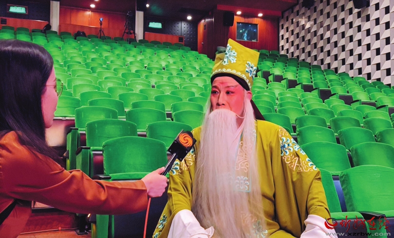 演出現(xiàn)場(chǎng),演員楊仲義接受媒體采訪。