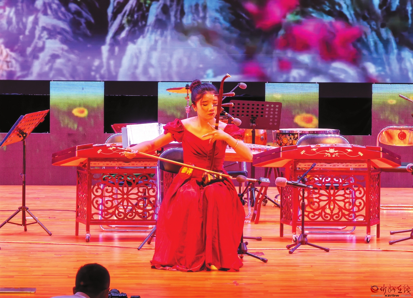 由原平市文化和旅游局選送的二胡獨(dú)奏《藍(lán)花花敘事曲》,是陜西省民族歌舞團(tuán)作曲家關(guān)銘于1981年根據(jù)陜北民歌《藍(lán)花花》創(chuàng)作的一首二胡獨(dú)奏曲。作品采用西洋奏鳴曲式和中國(guó)板腔體戲曲音樂相結(jié)合的結(jié)構(gòu),通過對(duì)藍(lán)花花這樣一個(gè)美麗善良、天真淳樸的農(nóng)村姑娘典型形象的塑造,以及她在愛情中的不幸遭遇,展現(xiàn)了藍(lán)花花勇于向封建勢(shì)力抗?fàn)幍膱?jiān)強(qiáng)性格。演奏者宣晨虹畢業(yè)于大慶師范學(xué)院音樂與舞蹈學(xué)院音樂表演二胡專業(yè),在校期間多次獲得國(guó)家勵(lì)志獎(jiǎng)學(xué)金和院級(jí)一等獎(jiǎng)學(xué)金。2015年榮獲北京民樂國(guó)際民族器樂大賽少年組金獎(jiǎng)。演奏中,她充分使用了上滑音、下滑音、墊指滑音、回滑音以及揉弦等技巧,使得琴聲輝煌絢麗,形成一種雄渾和連綿的演奏效果,較好地表達(dá)了作品的規(guī)定情緒。