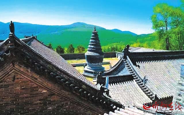 五臺山宛如一位智者,跏趺于太行山的雄闊之中。這里山川壯麗,風(fēng)景秀美,是中國佛教四大名山之首,更是文殊菩薩的道場,散發(fā)著無盡的佛光與智慧,被譽為“佛國圣地”“清涼世界”。 從忻臺旅游公路駛?cè)肱_豆線,燦爛輝煌的金閣古寺就位于南臺和中臺之間的金閣嶺上,海拔1900米,宛若天上宮闕。初秋時節(jié),遠處山色空蒙,峰巒凝碧,近處樹蔭蔽日,曲徑通幽。累代的晨鐘暮鼓及戰(zhàn)亂的刀光劍影都散落在歲月深處,輕柔的風(fēng)拂過往事滄桑。 經(jīng)過懸掛著“金閣浮空”匾額的木牌坊,沿著108級漢白玉石臺階拾級而上,山門處沉靜肅穆。放慢腳步,深深呼吸,感受空氣的清新與純凈,感受獨有的靜謐與祥和。走進寺內(nèi),仿佛穿越時空,抵達一個與世隔絕的佛國世界。