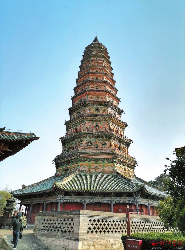 在洪洞縣,有一座舉世聞名的佛教古剎廣勝寺,“三絕一奇”令人驚嘆。一絕是飛虹琉璃塔,是廣勝寺標志性建筑,被推為全國第一塔,塔身外部有七色琉璃構(gòu)件與裝飾圖形,每一層都有一組中心圖案,生動逼真,色彩艷麗,被認證為“世界最高的多彩琉璃塔”。二絕是《趙城金藏》,是玄奘從天竺取回的梵文經(jīng)卷中譯善本,世界上僅此一部,被譽為稀世珍寶。三絕是元代壁畫。內(nèi)容以祈雨、行雨、酬神等生活場景為主,布局嚴謹,造型生動,堪稱我國風俗神話題材的壁畫杰作。一奇是左右扭古柏,有1300余年歷史,一東一西,像兩位護法將軍守衛(wèi)著大殿。兩株古柏,左邊的朝左扭,右邊的向右扭,甚為奇特。