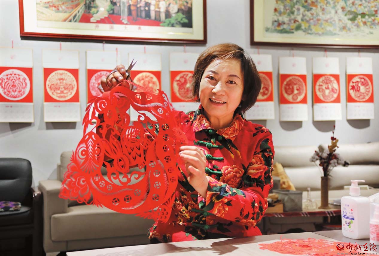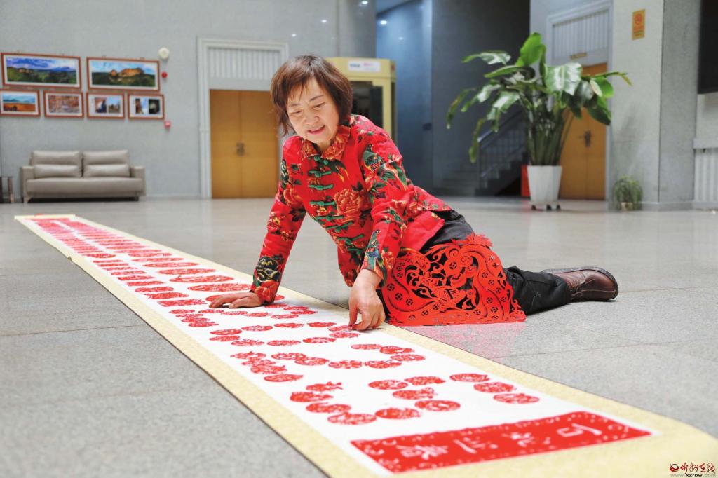 在位于岢嵐縣新時(shí)代文明實(shí)踐中心的非遺工作室內(nèi),柔和的燈光下,隨著紙屑紛紛落地,又一幅剪紙作品《金蛇賀歲》在非遺傳承人韋東梅的手中誕生了。“正好100幅了!”摘掉老花鏡,韋東梅活動(dòng)活動(dòng)手指,雖然連續(xù)工作略顯疲憊,但從她的臉上看到更多的是作為創(chuàng)作者的滿足。