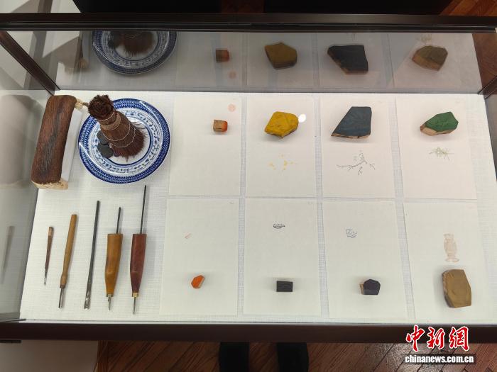 10月13日,中國饾版彩印信箋藝術(shù)展展出制作饾版彩箋的工具。 范宇斌 攝