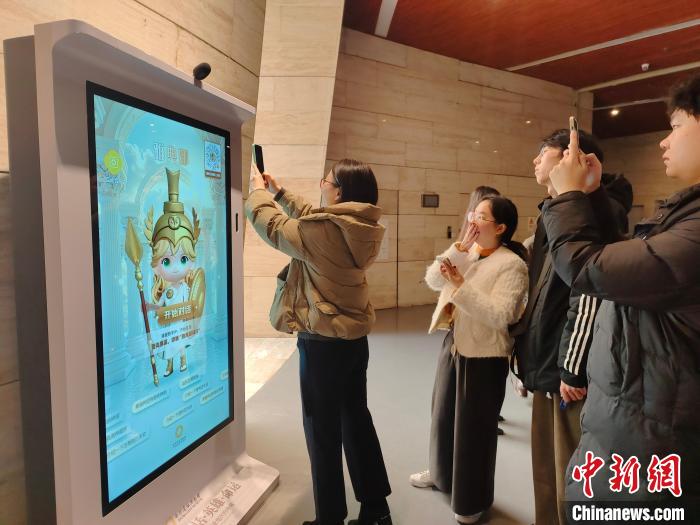 觀眾掃碼識別,在線體驗數(shù)智人“雅典娜”。成都金沙遺址博物館供圖