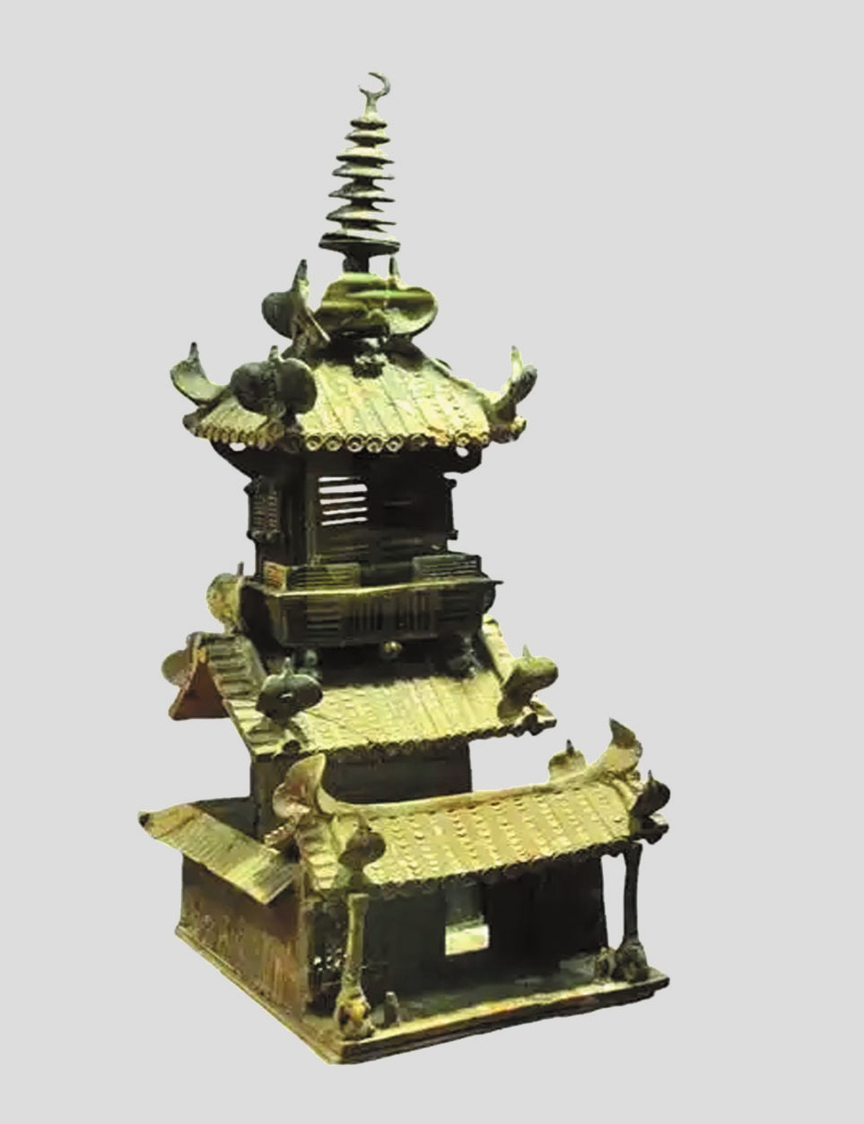 戰(zhàn)國至秦漢時期,人們對建筑高度的追求盛行一時,在圖像中多有反映?!妒酚洝分杏涊d了一座形制特別的高樓——“井干樓”:“宮北有井干臺,高五十丈,積木為樓?!彪y以想象,井干樓要耗費(fèi)多少木材??偟膩碚f,佛教在傳入中國之初,為了便于人們接受,往往根據(jù)實際情況進(jìn)行傳播,因此佛教和佛塔一進(jìn)入中國就與本土文化相結(jié)合,而樓閣式塔的出現(xiàn),正是創(chuàng)新的結(jié)果。(杭 侃)